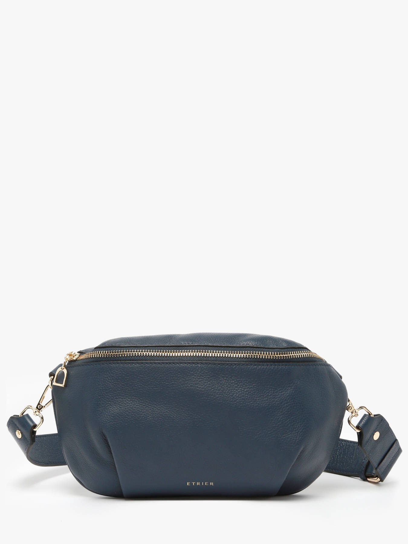 The maxi ETRIER belt bag from the TRADITION line is adorned with gold metal accessories and is available this season in trendy pastel colors. Made of cowhide leather, it features a back pocket and closes with a zipper. The wide removable and adjustable leather shoulder strap allows for wearing it crossbody. The spacious interior includes a compartment with a zip pocket and two patch pockets for optimal organization.