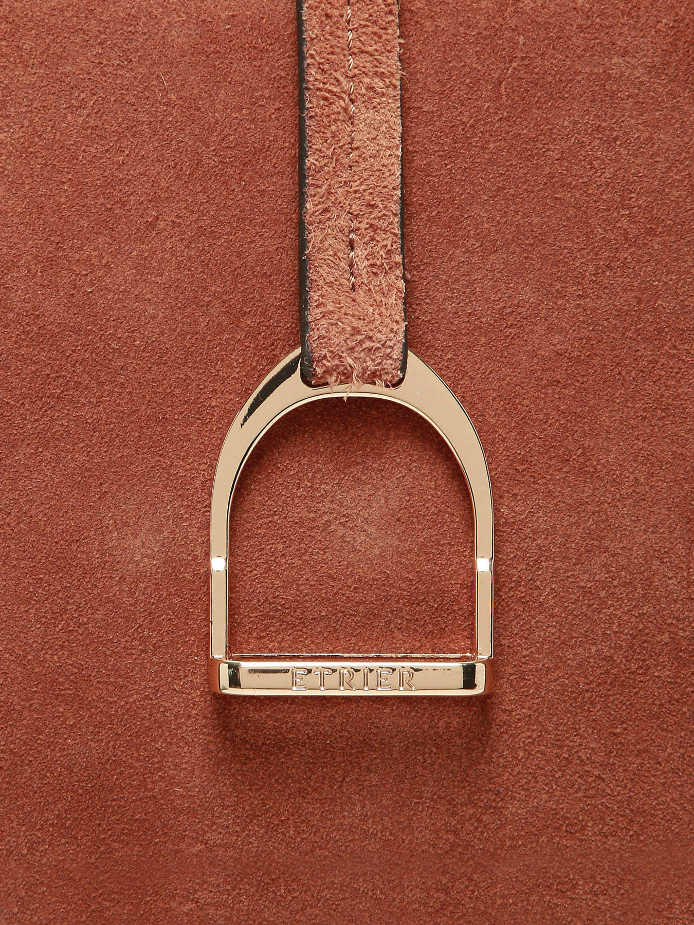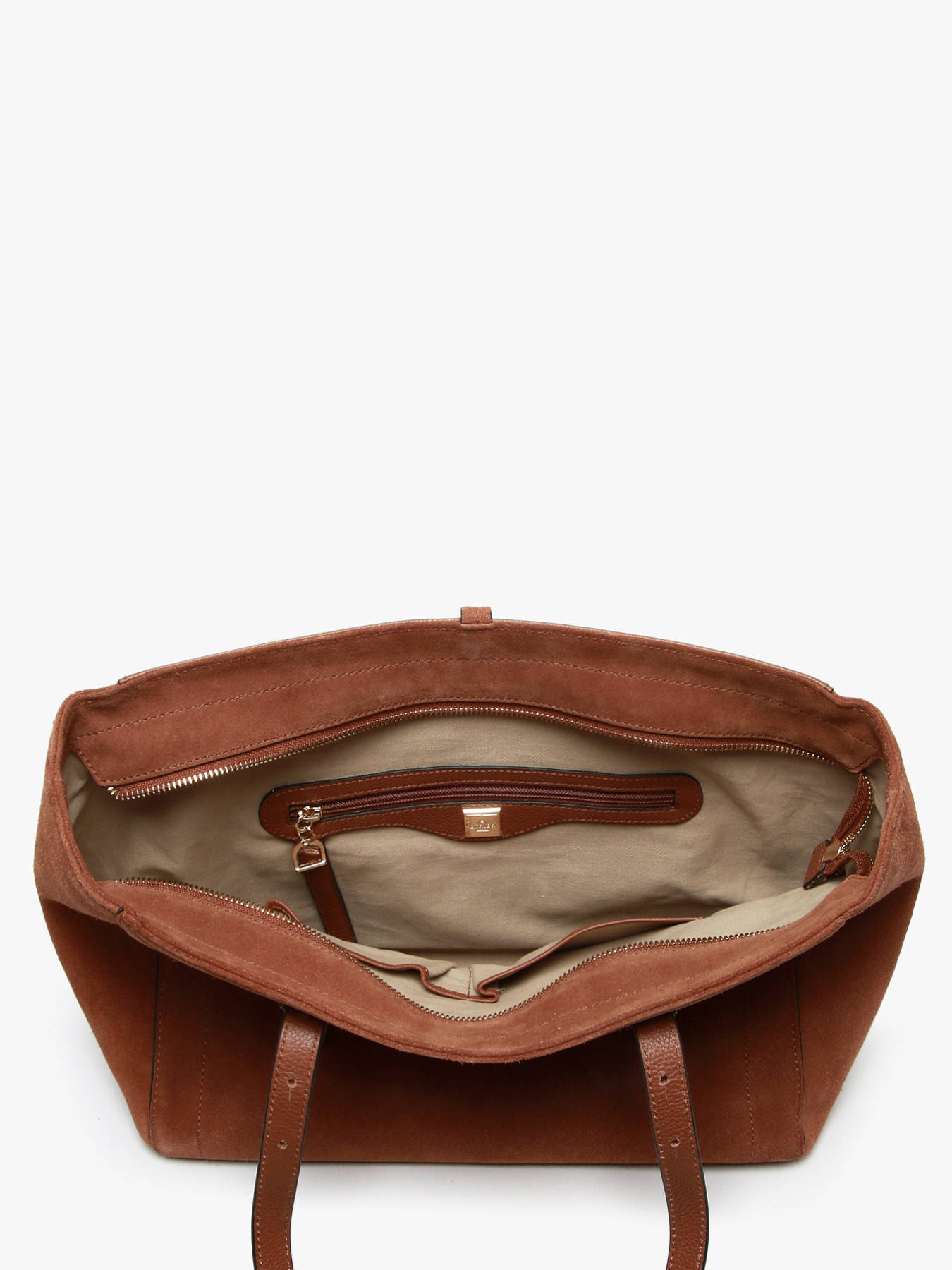 Le sac porté épaule ETRIER de la ligne ALTESSE SUEDE est réalisé en cuir velours au toucher doux. Il adopte une forme cabas idéale pour un usage quotidien. Il se ferme à l’aide d’une fermeture zippée et est orné d’un pendentif bijou en forme d’étrier, signature élégante de la Maison. À l’intérieur, un compartiment spacieux accueille deux poches plaquées et une poche zippée pour une organisation optimale. Il offre également un format généreux permettant d’y glisser des documents au format A4 ainsi qu’un ordinateur portable jusqu’à 13 pouces. Le dos du sac est en cuir grainé, pour une meilleure résistance. La ligne ALTESSE SUEDE revisite l’icône ETRIER avec une texture chaleureuse et un esprit « Highlander Cowboy » mêlant raffinement et caractère.