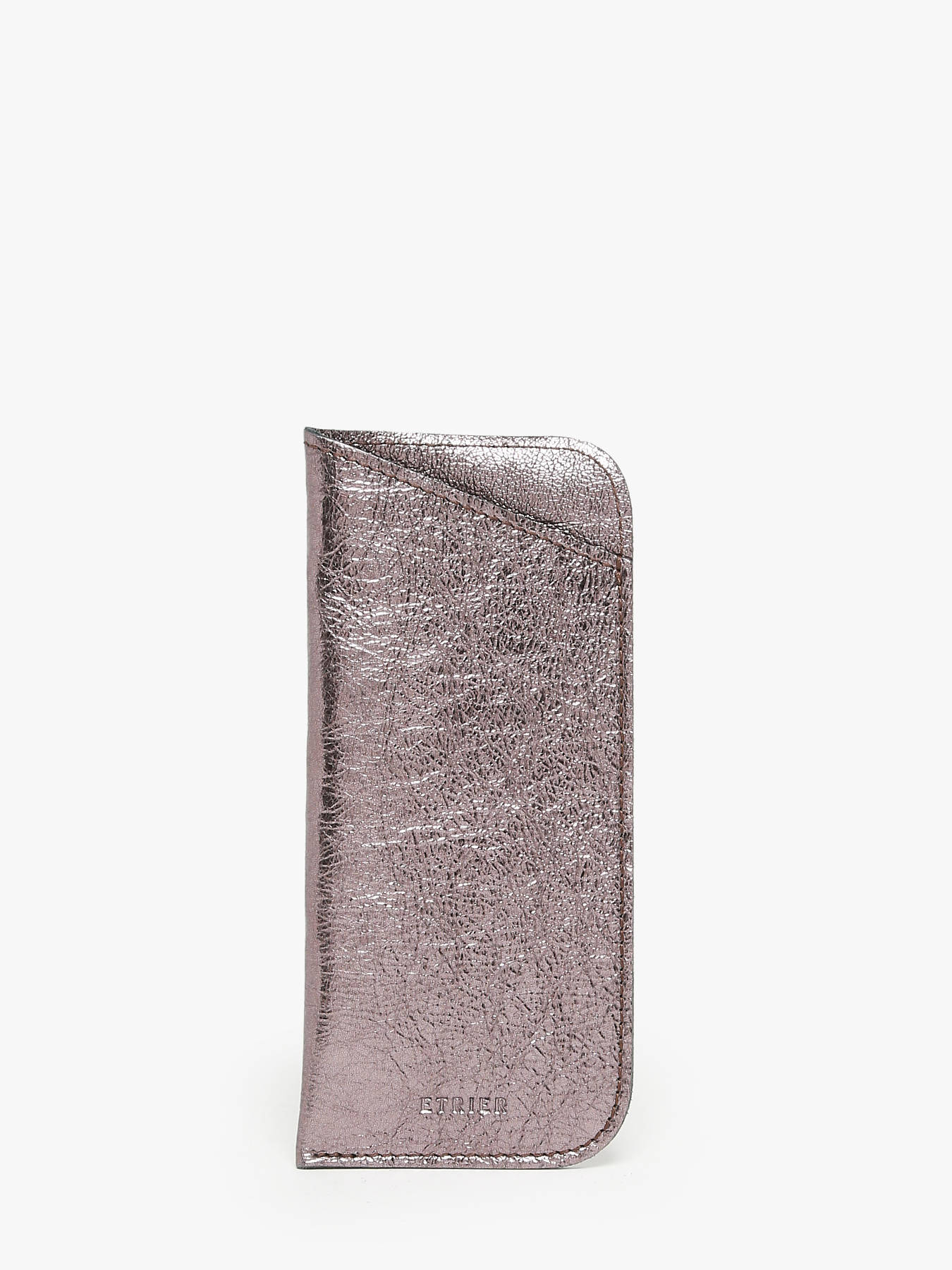 The Etincelle Irisée eyewear case by ETRIER embodies discreet elegance and refined protection for your glasses. Crafted from high-quality leather, this case reflects the excellence of French craftsmanship. The ETRIER logo, delicately embossed in tone-on-tone at the center, adds a touch of sophistication. On the back, the ""Made in France"" label at the bottom center highlights the brand's exceptional expertise, emphasizing its commitment to quality craftsmanship. A chic and practical accessory, perfect for preserving your glasses with elegance, while showcasing French craftsmanship.